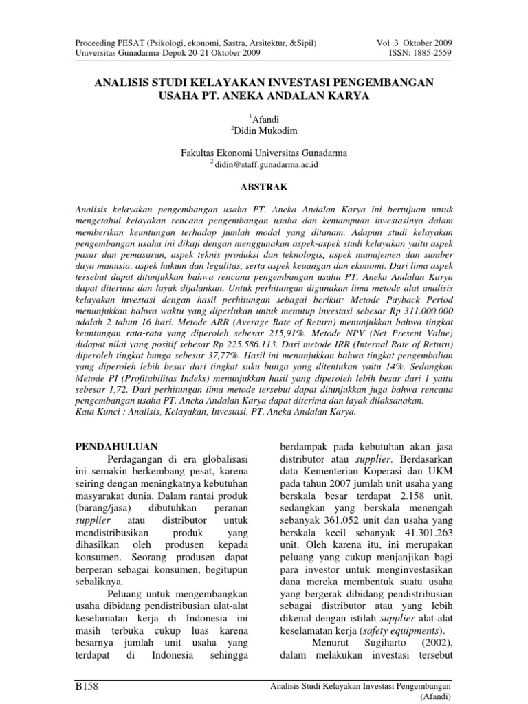 ANALISIS STUDI KELAYAKAN INVESTASI PENGEMBANGAN USAHA PT