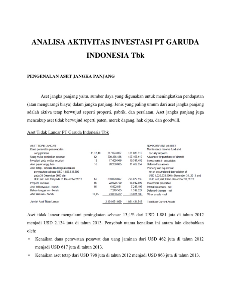 Analisa Aktivitas Investasi Pt Garuda Indonesia Tbk