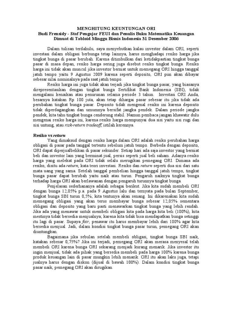 Menghitung Keuntungan Investasi Ori